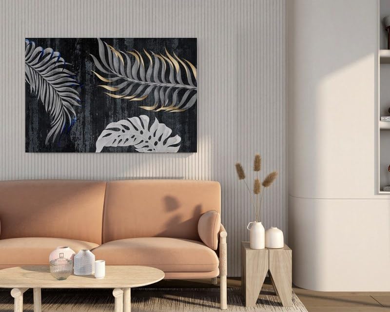 لوحة فنية جدارية قماشية مطبوعة برسومات توضيحية تجريدية باللون الأسود من هوم جاليري، مقاس 60 × 40 سم، H01295