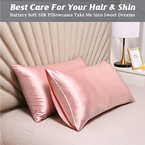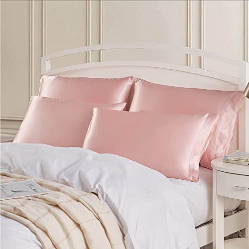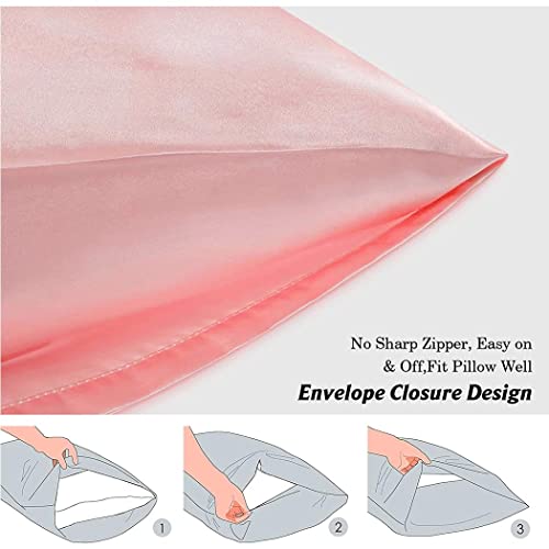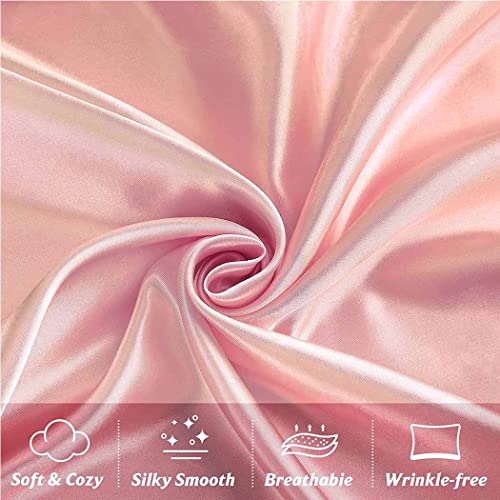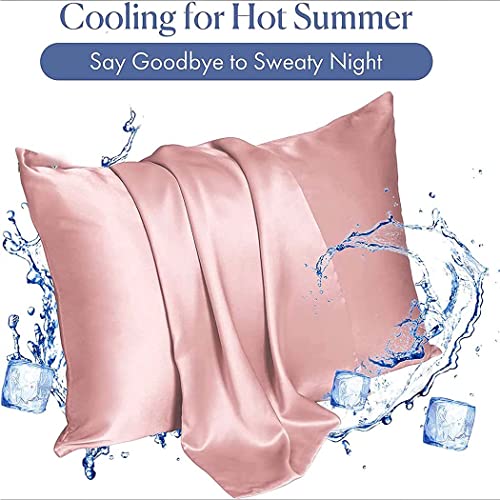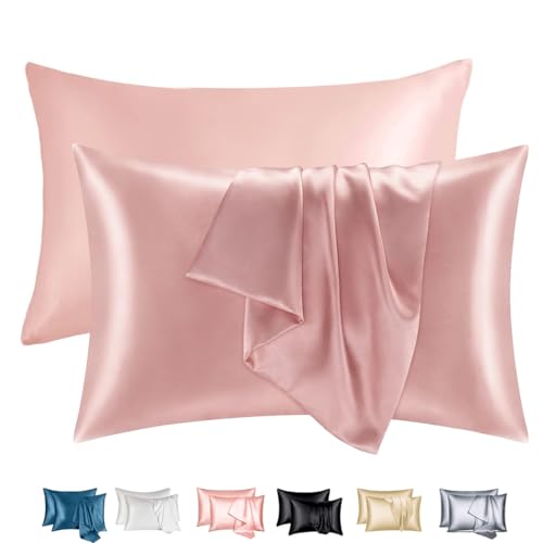 كيس مخدة ساتان، أكياس مخدات بمقاس كوين (51×76 سم)، كيس مخدة ستاندرد من قماش ناعم ومضاد للتجاعيد ومقاوم للبقع بغطاء إغلاق من كنايسون، طقم من قطعتين، وردي