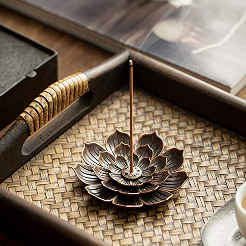 - صناعة متقنة - حامل البخور مصنوع من نحاس أصفر، صلب ومتين. يتميز بتصميم جمالي مكون من 3 طبقات بنمط زهرة اللوتس ما يجعله مناسب للمفروشات الكلاسيكية ويتميز بتأثيرات تساعد على التأمل والنوم.