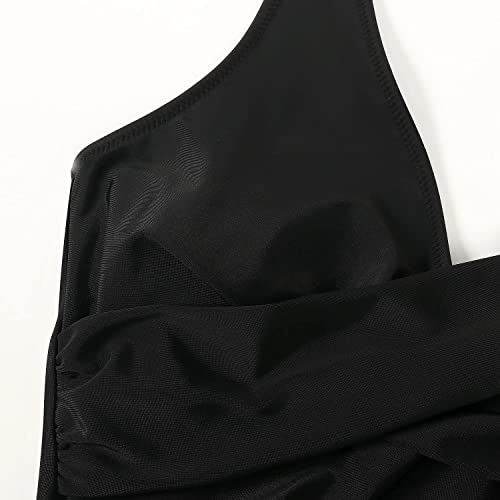 مايوه سباحة للنساء من قطعة واحدة برقبة على شكل V بدون ظهر - بدلة سباحة مكشكشة للتحكم في البطن مع وسادات قابلة للإزالة، تصميم تخسيس متقاطع للشاطئ وحمام السباحة وعطلات البحر الأحمر