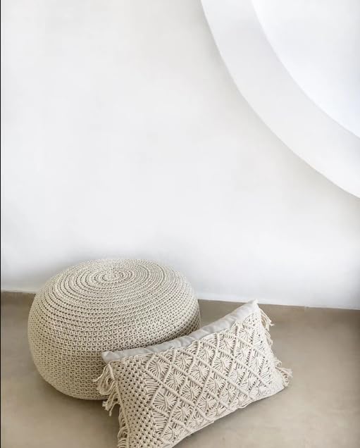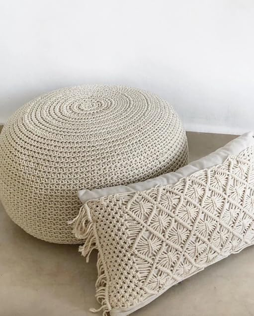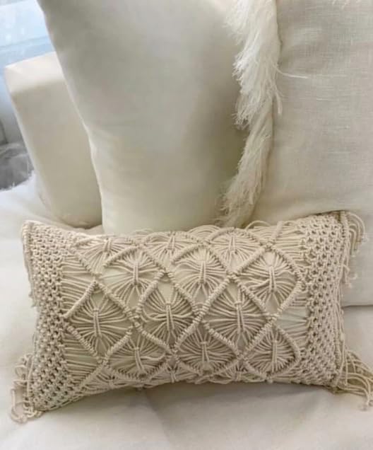 غطاء وسادة مصنوع يدويا من المكرمية، قطن اوف وايت، تصميم معقود مزخرف مع حشوة (35 × 55 سم)