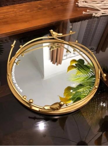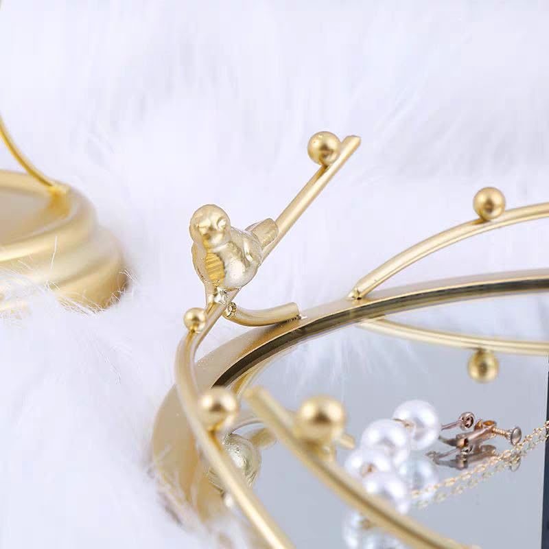 مرآة دائرية ديكور منزلي فاخرة بإطار ذهبي، تصميم عصفور، ٣٠ سم قطر