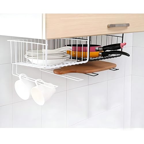 رف معدني مدمج تحت الرف لتنظيم المطبخ والحمام - مثالي للأغراض خفيفة الوزن