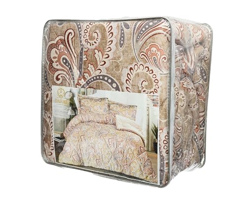 لحاف وطقم أكياس مخدات من الساتان مطبوع من دهب لاكشري هوم، 3 قطع تصميم 1
