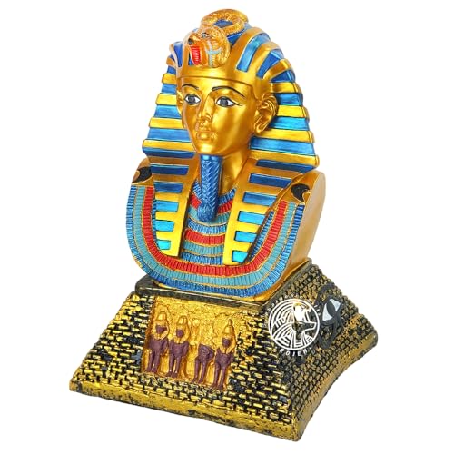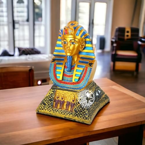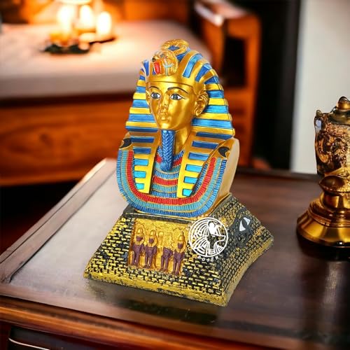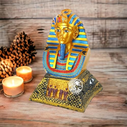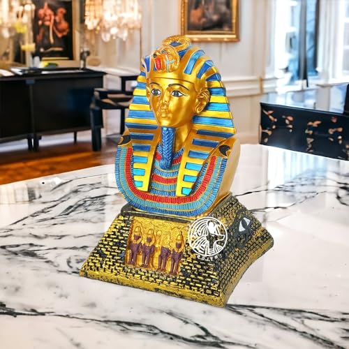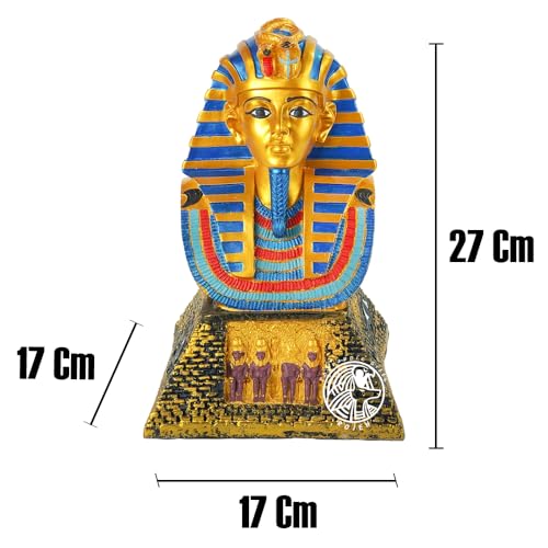 تمثال فرعوني - الملك توت عنخ آمون على نصف هرم منحوت بالرسومات الفرعونية - مصنوع من البورسيلين - صناعة يدوية مصرية من روچيه - هرم ذهبي