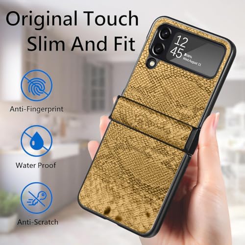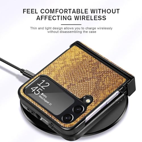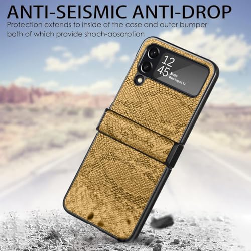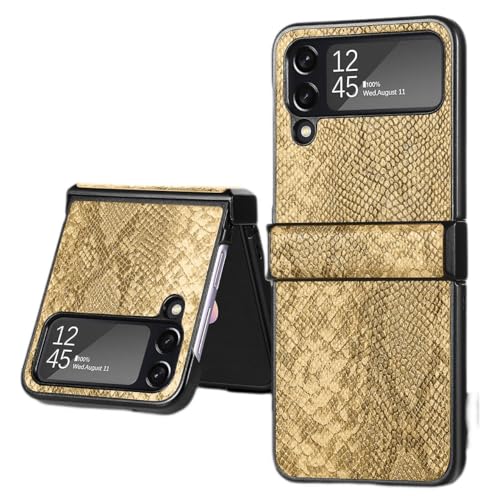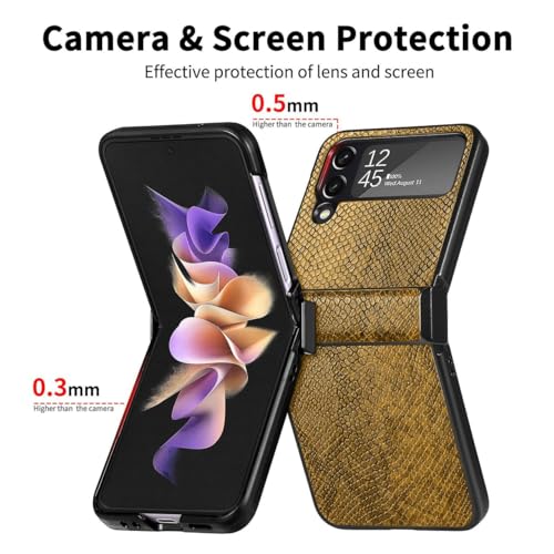 جراب متوافق مع جالاكسي Z فليب 3 بريموم من الجلد الصناعي [على شكل جلد التمساح] لسامسونج جالاكسي Z فليب 3 - من Next store (أصفر)