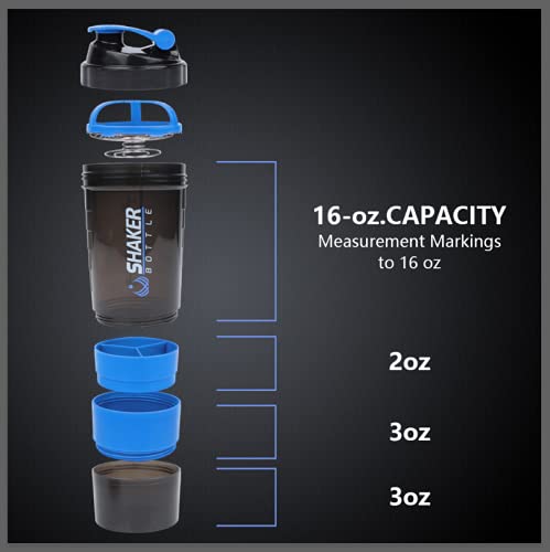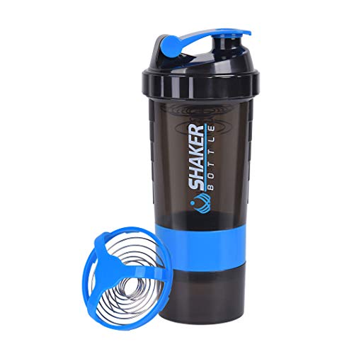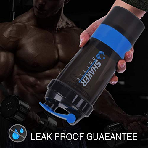زجاجة شيكر للبروتين مياه رياضية قابلة للثني ومقومة للتسرب والانزلاق من 3 طبقات بسعة 500 مل - كوب خلط مسحوق بروتين مع مساحة تخزين لون أزرق جرينيريك