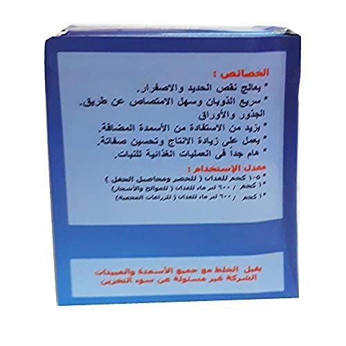 - المواصفات :الحديد المخلبي هو مسحوق لتقوية النبات وإمداده بالحديد لإنتاج منتجات مميزة فالحديد من العناصر الضرورية للنبات ويدخل في تركيب أنزيمات الأكسدة ويعالج اصفرار الاوراق والعروق الوسطى ويدخل أيضا في تركيب شيلات الحديد