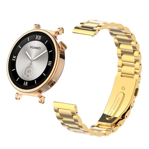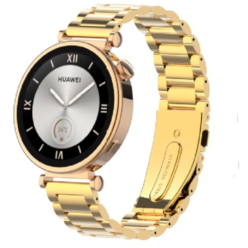 سوار نيسلين متوافق مع ساعة هواوي GT4 41 ملم 2023، سوار ساعة معدني من الستانلس ستيل قابل للتعديل 18 ملم مع مشبك مزدوج الطي، سوار كلاسيكي مطور لساعة هواوي GT4 41 ملم (ذهبي)