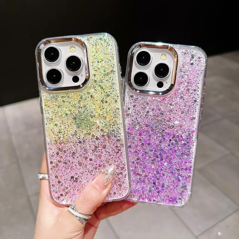 - نقشة جليتر لامعة: تصميم لامع مذهل مع جزيئات لامعة عائمة يُضفي تأثير متدرج متغير ومتحرك لافت للنظر.