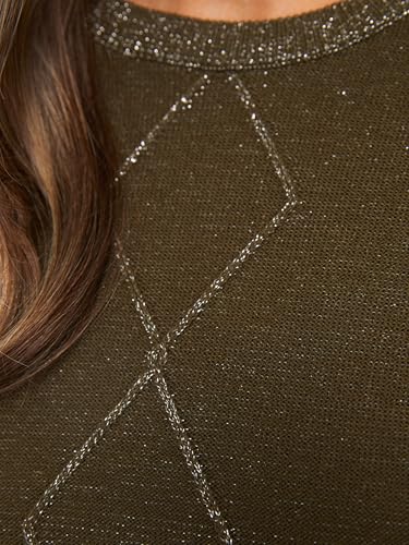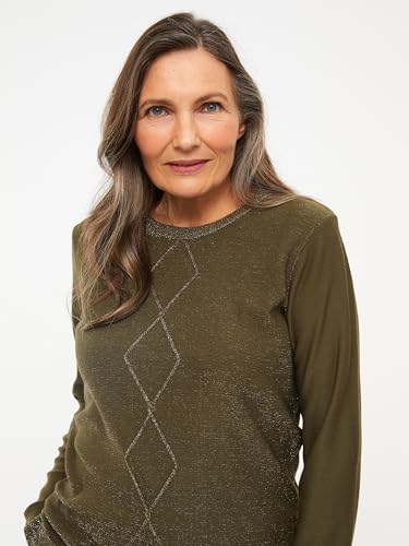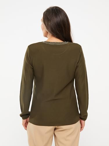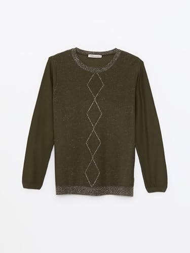 بلوفر تريكو برقبة دائرية ضيقة وأكمام طويلة بلون فضي للنساء من ال سي وايكيكي