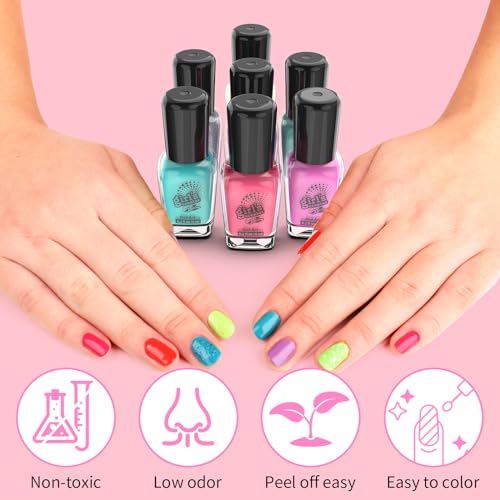 - طلاء أظافر قابل للتقشير للبنات الصغار - جميع ألوان طلاء الأظافر غير سامة، ويمكن تقشيرها بسهولة من الأظافر والبشرة. يمكن لطفلتكِ الصغيرة إزالة أي أخطاء طلاء بسهولة. مع عدم الحاجة إلى مواد كيميائية لإزالة فن الأظافر، يمكن لأطفالك الاستمتاع في عطلة نهاية الأسبوع.