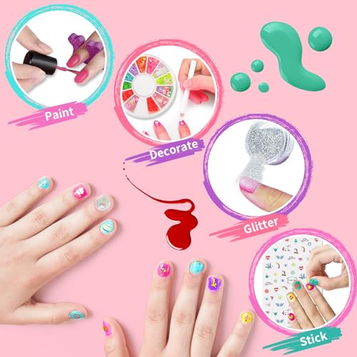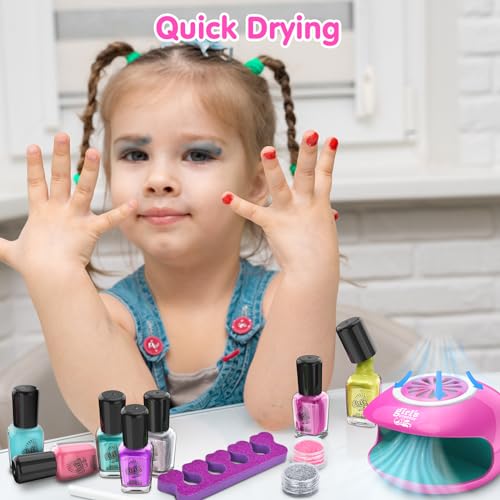 مجموعة ألعاب طلاء أظافر للأطفال من سن 7 - 12 سنة لفنون تزيين الأظافر للبنات مع مجفف أظافر وطلاء أظافر مقشر وجليتر وملصقات وأحجار كريمة لصالونات المانيكير لحفلات النوم وأعياد الميلاد من ام اكس لوفرو