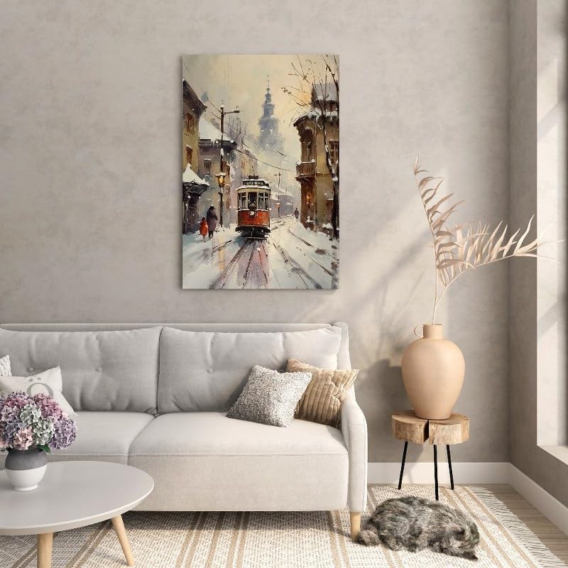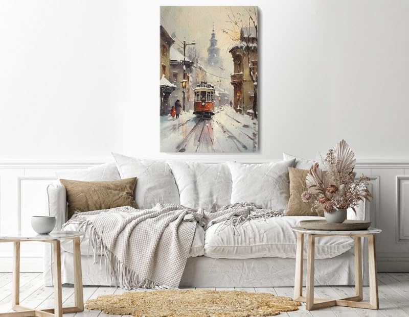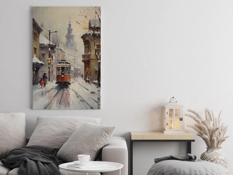 لوحة فنية جدارية من القماش بطبعة ترام ثلج بيج من هوم جالاري، مقاس 60×40 سم، موديل H01313