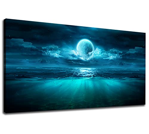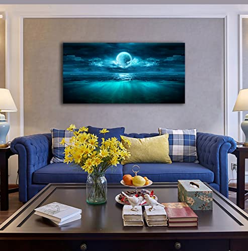 لوحة فنية جدارية من القماش بتصميم منظر بحري وقمر ومحيط وسماء ليلية قماشية مطبوعة لغرفة المعيشة وغرفة النوم 24 انش × 48 متعدد الألوان