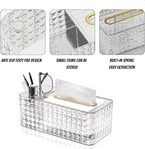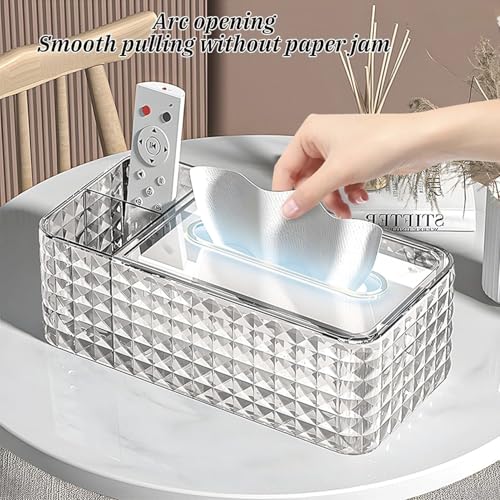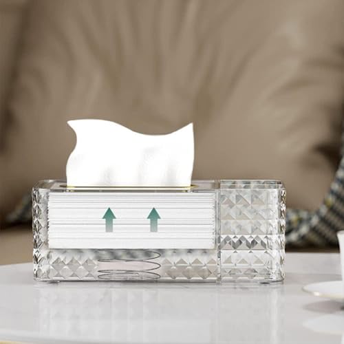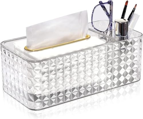 صندوق منديل وجه مودرن هوم اكريليك شفاف مع غطاء وحامل علبة مناديل مستطيل مناسب للمنزل والمكتب والحمام وغرفة النوم والسيارة (شفاف)