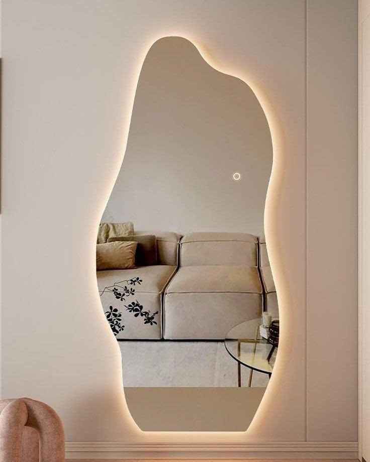 مرايا ديكور تصميم مموج حر - مقاس 60*150سم -مرآة LED ثلاثه الوان أنيقه - لمسة عصرية بإضاءة ساحرة بالتحكم باللمس مرايا طويلة