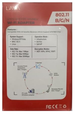 محول واي فاي يو اس بي، سرعة يو اس بي 300 ميجابت في الثانية، 802.11 - متوافق مع اجهزة الكمبيوتر وجميع مستقبلات الاقمار الصناعية التي تدعم شريحة MTK7601