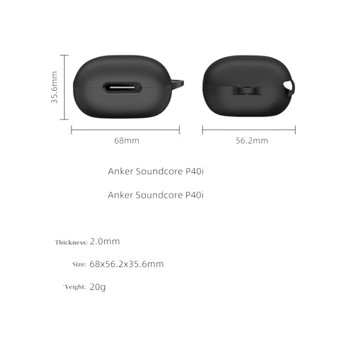 جراب حماية من السيليكون لجهاز انكر ساوند كور P40i - جراب ناعم مضاد للصدمات مع سلسلة مفاتيح، جلد مضاد للانزلاق ومقاوم للغبار لعلبة شحن ساوند كور P40i (لون أسود)