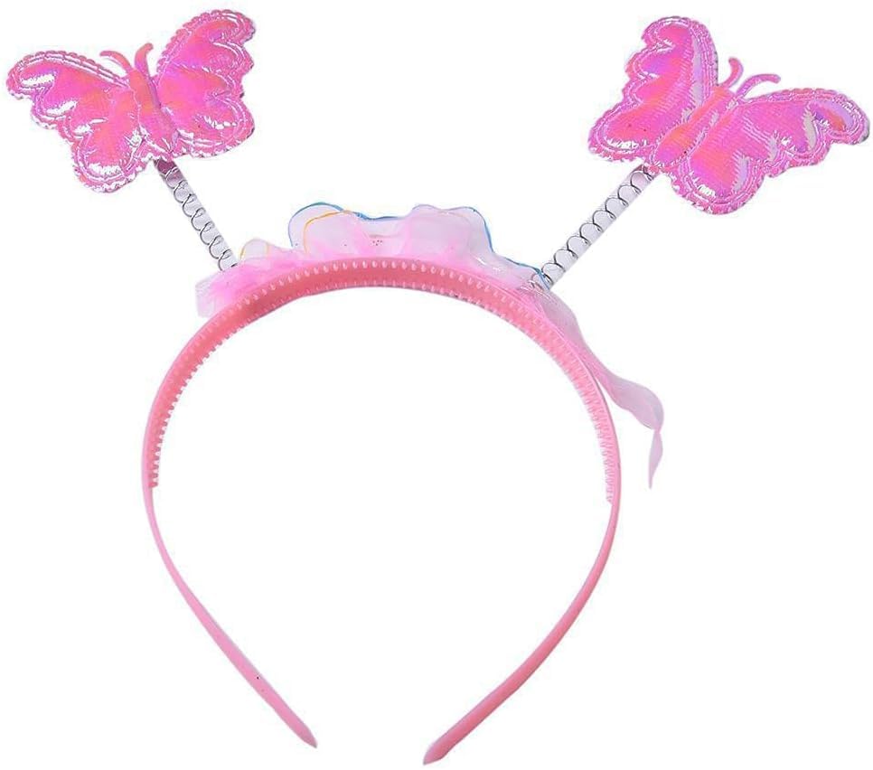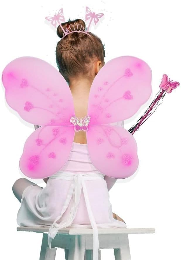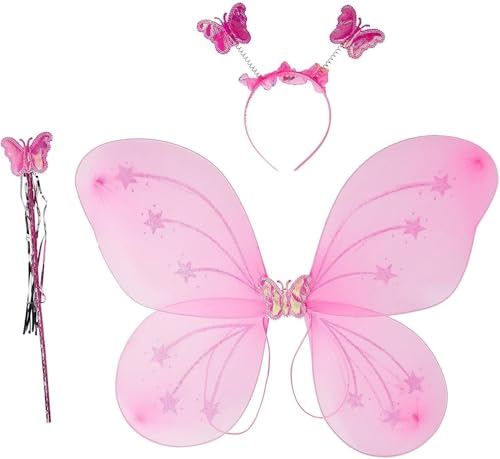طقم جناح ملاك على شكل فراشة، ساتان وعصا وطوق للرأس للبنات للحفلات من كيدز زون، مجموعة من 3 قطع، لون وردي