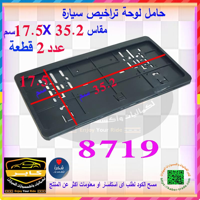 حامل إطار لوحة السيارة، قاعدة لوحة منتج مصمم لتأمين وتثبيت رقم السيارة بحزم على السيارة (35.2×17.5 سم، العدد: 2 قطعة، الرمز: 8719) - لوحة أرقام السيارة من كابر تريد