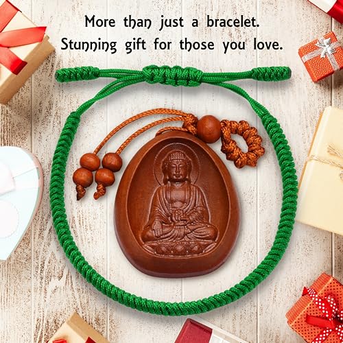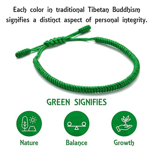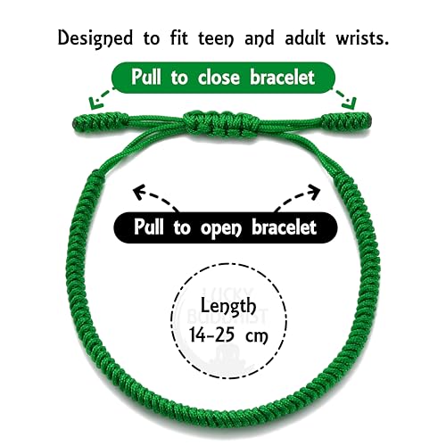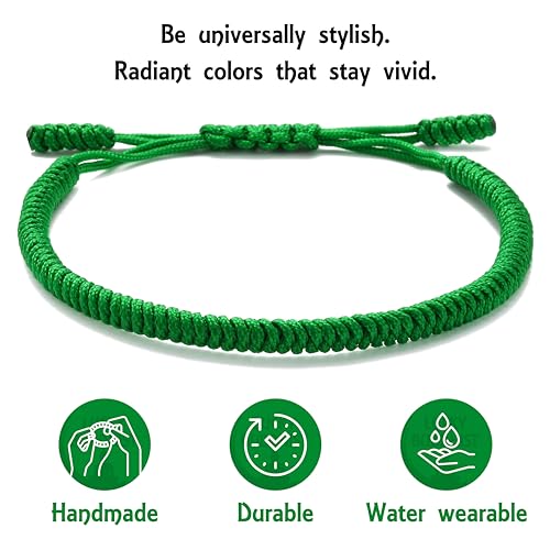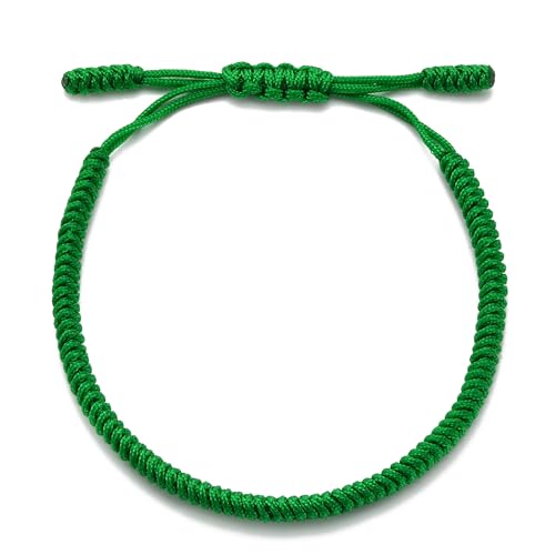 سوار الحظ وقلادة/عقد بتصميم لاكي بوديست أساور الصداقة المضفرة قابلة للتعديل مصنوعة يدويا بحب مزينة بنمط التبت للرجال والنساء (لون أخضر)