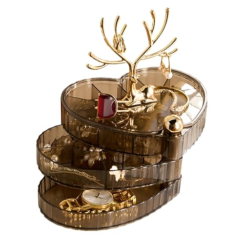 منظم دوار للمجوهرات - للبنات صناديق تخزين الأقراط والإكسسوارات من 3 طبقات | حافظة شفافة لربطات الشعر والمجوهرات والأساور والقلائد والخواتم والأقراط.متعدده الالوان