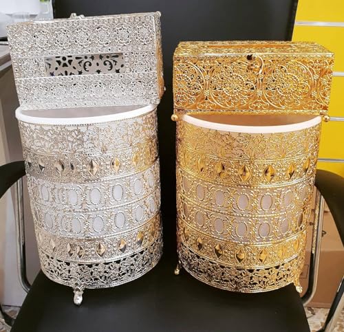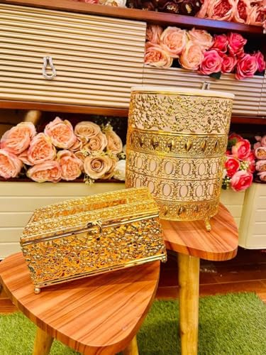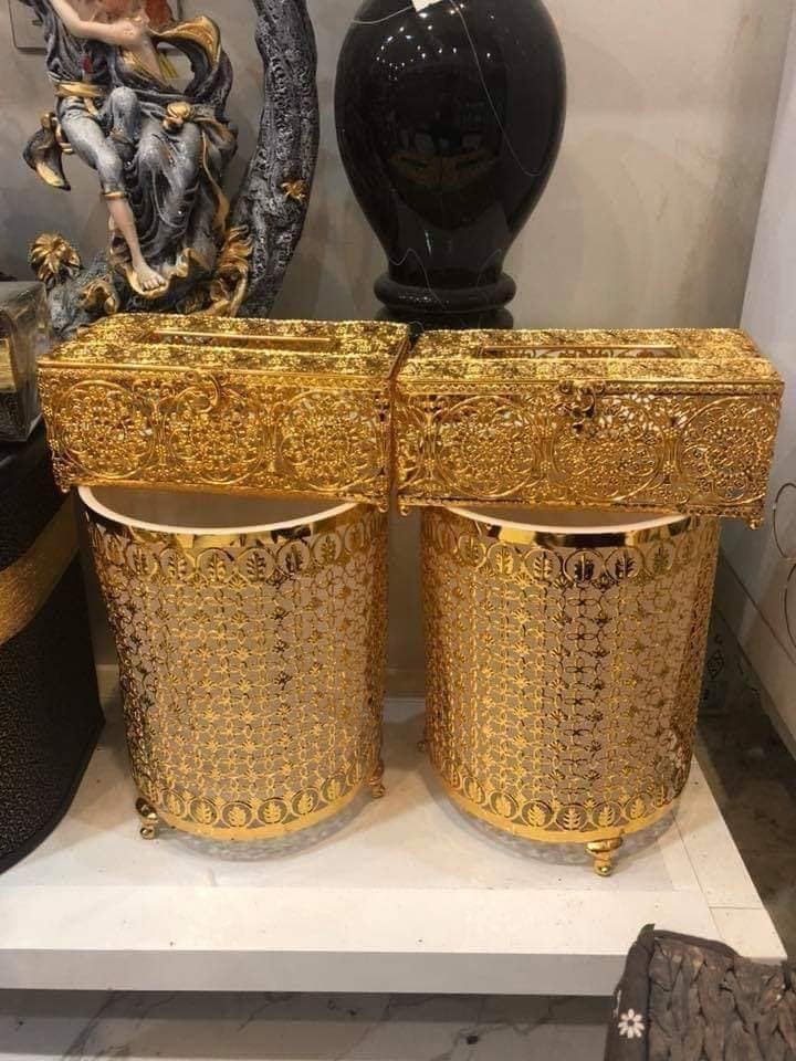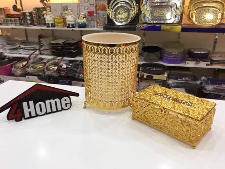 سله مهملات وعلبة كلينكس من المعدن مستورده طلاء ذهبي ثابت