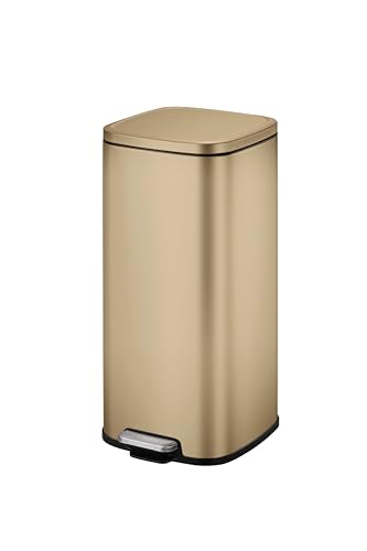 سلة مهملات مربعة من الفولاذ المقاوم للصدأ بقفل ناعم ومقاومة لبصمات الأصابع ايكو سعة 30 لتر ذهبي فاتح