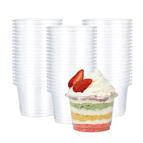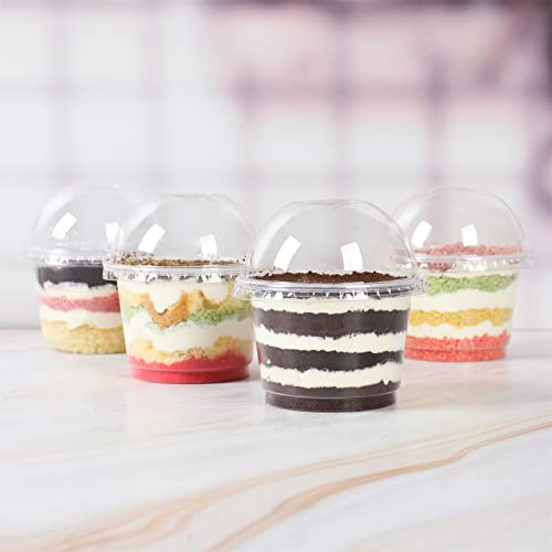 مجموعة من 50 كوب بلاستيكي بارفيت بسعة 8 اونصة وغطاء مقبب اكواب ايس كريم لحفظ الطعام والحلوى والفواكه جايي