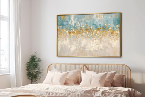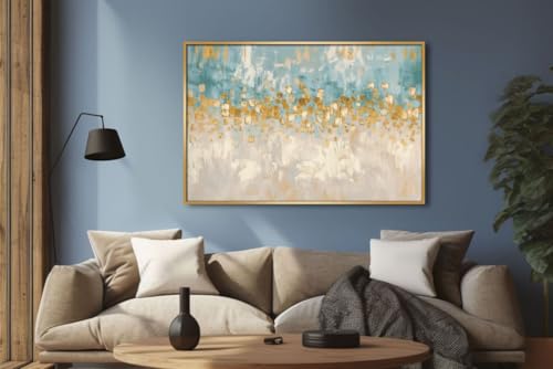 لوحة جدارية من امبيانس ارت، بساط حائطي مزخرف لغرفة المعيشة، تصميم تجريدي باللونين الفيروزي والذهبي، مقاس 59.9 × 39.9 سم، قطعة واحدة