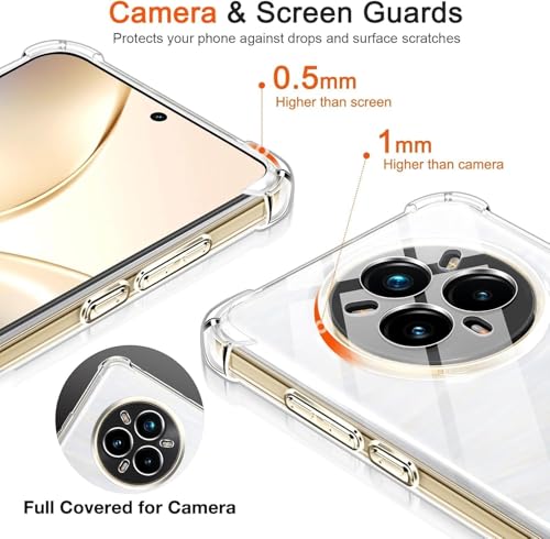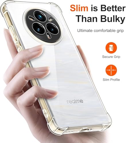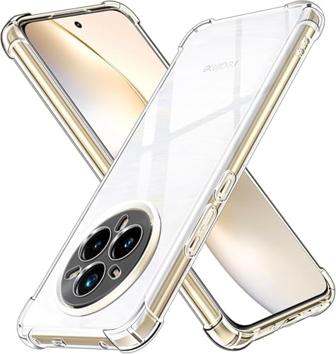 جراب موبايل شفاف متوافق مع اوبو ريلمي 14 برو بلس . مدرع باربع زوايا يوفرالحماية الكاملة للهاتف مصنوع من البولي يوريثين المقاوم للحرارة ومضاد للاصفرار - شفاف