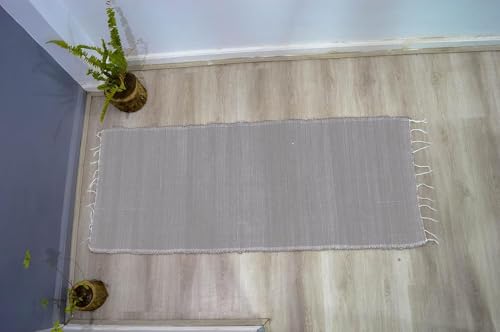 سجادة كليم مصنوعة يدويًا من القطن الطبيعي ايجيبت انتيكيكس، 1.50 متر × 70 سم، رمادي فاتح