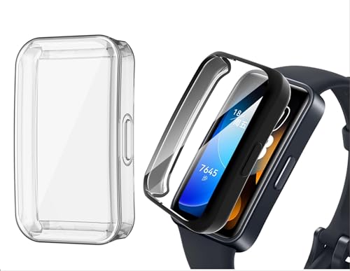 غطاء حماية لساعة هواوي باند 9 من ديتويا البولي يوريثين الحراري الناعم عالي الدقة بتغطية كاملة 360 درجة الحساسية - شفاف + أسود