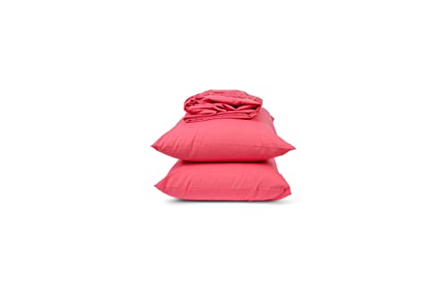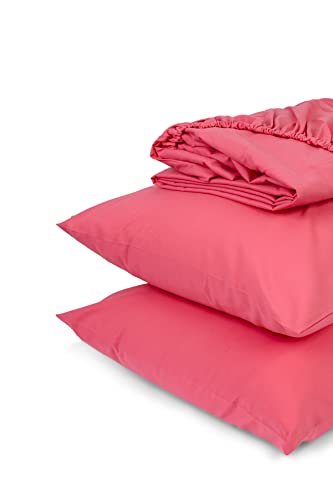 طقم ملاية سرير بحواف باستك من هوم اوف لينين، مقاس 100 × 200 سم، لون فوشيا، قطن، سادة، كوين