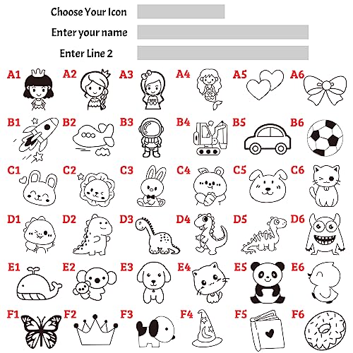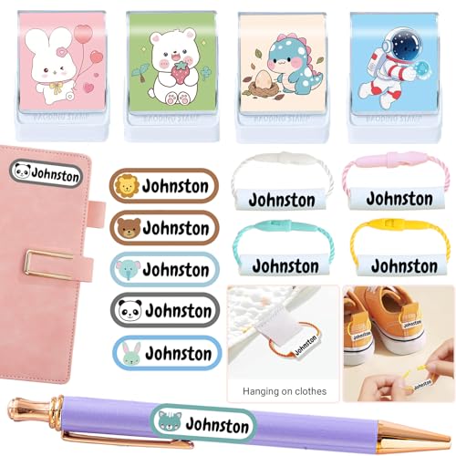 - أختام أسماء بطابع حيوانات: خاتمة الاسم الواحد، ختم بالاسم يدوم إلى الأبد، مصممة لتصميم علامة الملابس لرياض الأطفال والرعاية النهارية والحضانة، يمكنك تخصيص أي اسم ورقم تريده، يأتي معها هدايا مجانية (بما في ذلك شريط طباعة الملابس الداكنة، 20 ملصق كوب ماء، و6 ورق كرتوني قابل للاستبدال). الخاتمة من مياكستم هي أسرع طريقة لوضع العلامات على الزي المدرسي