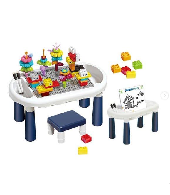 - تصميم مريح: هيكل متين مع أرجل باللون الكحلي وسطح طاولة أبيض، تتضمن سطحًا مدمجًا متوافقًا مع المكعبات للعب الآمن