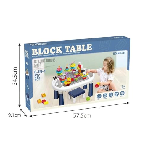 - مجموعة كاملة: تتضمن طاولة أنشطة واسعة وكرسي و49 مكعب بناء ملون لإمكانيات لعب إبداعية لا حصر لها