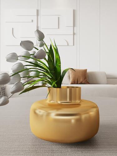 مزهرية زجاجية للمنزل والديكور 20 سم (ذهبي)