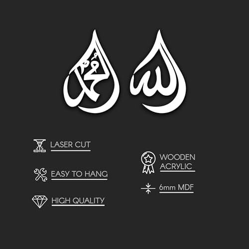 - ✅ طقم ديكور لامع من الخشب مطلي يدوياً: طقم ديكور الحائط الخشبي الإسلامي الرائع هذا مصنوع من خشب ام دي اف (خشب ليفي متوسط الكثافة) الصديق للبيئة بسماكة 6 ملم. مزين بطبقة من الاكريليك اللامع ما يُضفي تأثيراً عاكساً رائعاً.