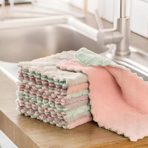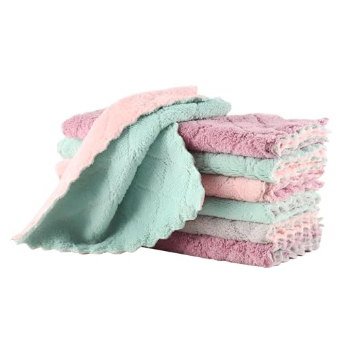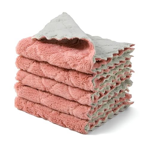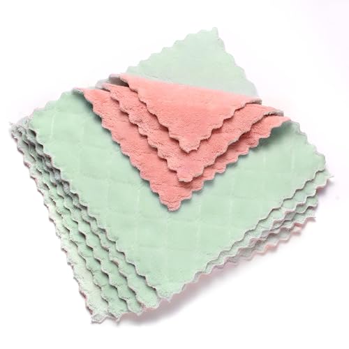 ستوكات القماش - سوبر ماصة مناشف المطبخ لتجفيف سريع والتنظيف خالية من الوبر ، مثالية للاستخدام المنزلي ، حزمة من 5 ألوان الوردي والأخضر
