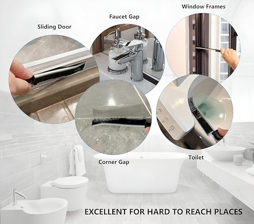 - 【تصميم رأس فرشاة مسطح】 فرشاة تنظيف الحمام بتصميم رأس مسطح، مما يسهل الوصول إلى الشقوق والزوايا العميقة مثل حواف الأحواض وفجوات النوافذ لتنظيف شامل. سواء كانت الفجوات حول حوض المطبخ أو حوض الحمام أو غطاء المرحاض، يمكن لأداة تنظيف الشقوق التعامل معها جميعًا.