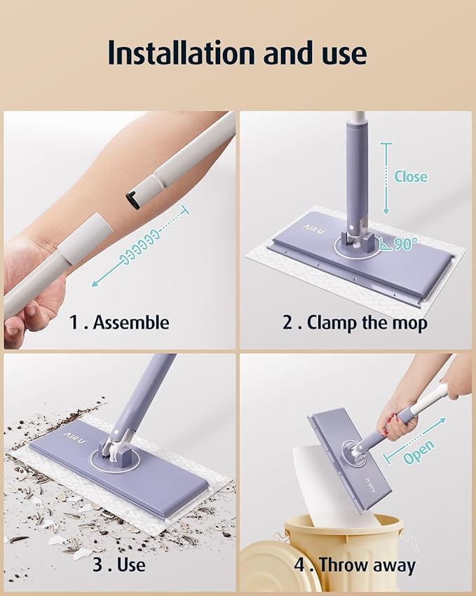 - [لا حاجة للانحناء]: عملية التنظيف بأكملها من التركيب مرورًا بالاستخدام وانتهاء بالتخلص من الوسادات لا تتطلب الانحناء مما يجعل التنظيف أسهل وأكثر راحة.