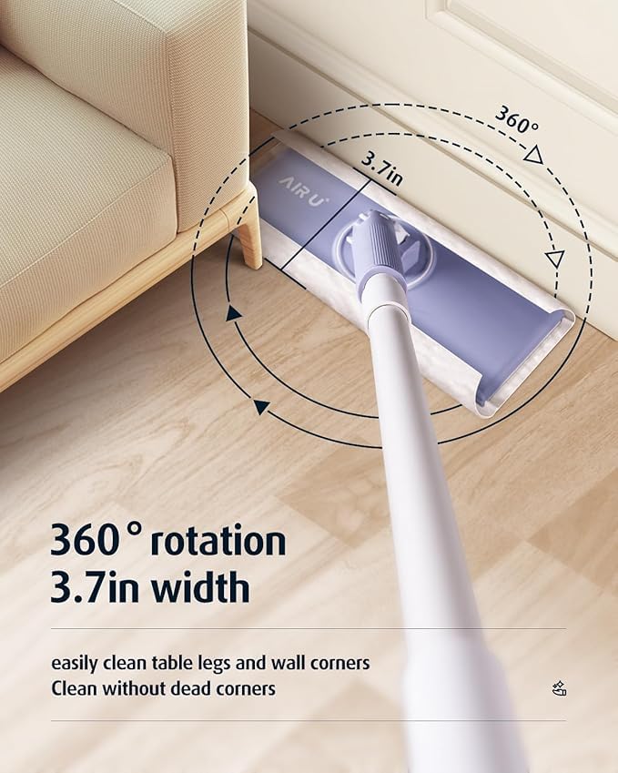 - [تنظيف من الزاوية إلى الزاوية]: مساحة موب للغبار مصممة بذكاء لاحتياجات الاستعمال مرة واحدة تصل بسهولة إلى فجوات الأثاث لتنظيف الغبار. يمكن أن تدور 360° حول أرجل الطاولة ويمكنها أيضًا تنظيف الحواف السفلية للجدران والأسقف مما يضمن خلو غرفتك من الغبار.