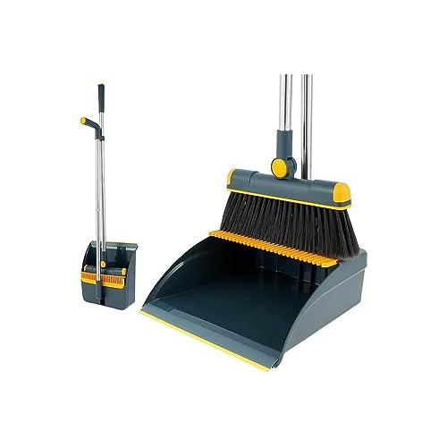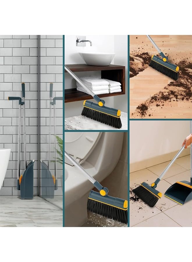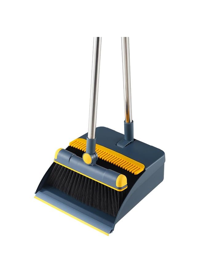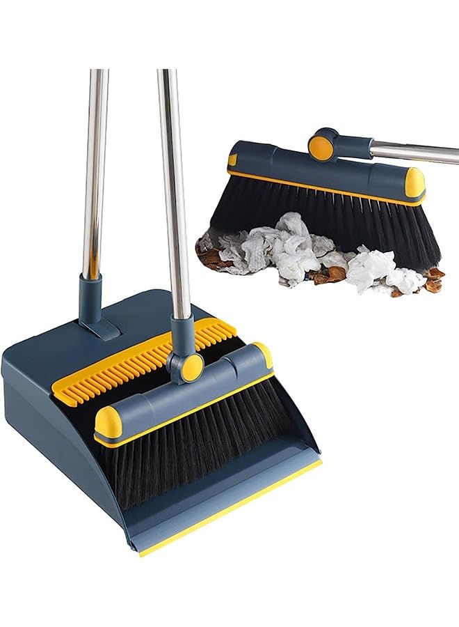 مجموعة مكنسة وجاروف للمنزل من تايمي، مجموعة جاروف ومكنسة بمقبض طويل للاستخدام الداخلي والخارجي شديدة التحمل للمطبخ والردهة والمكتب وجاروف قائم مع اسنان (ازرق)