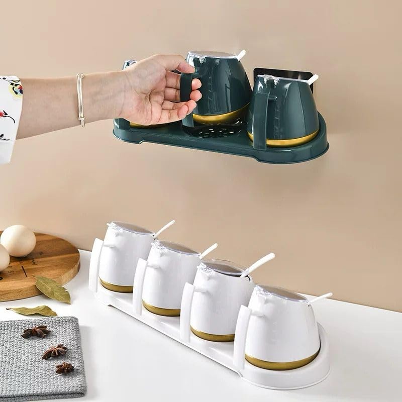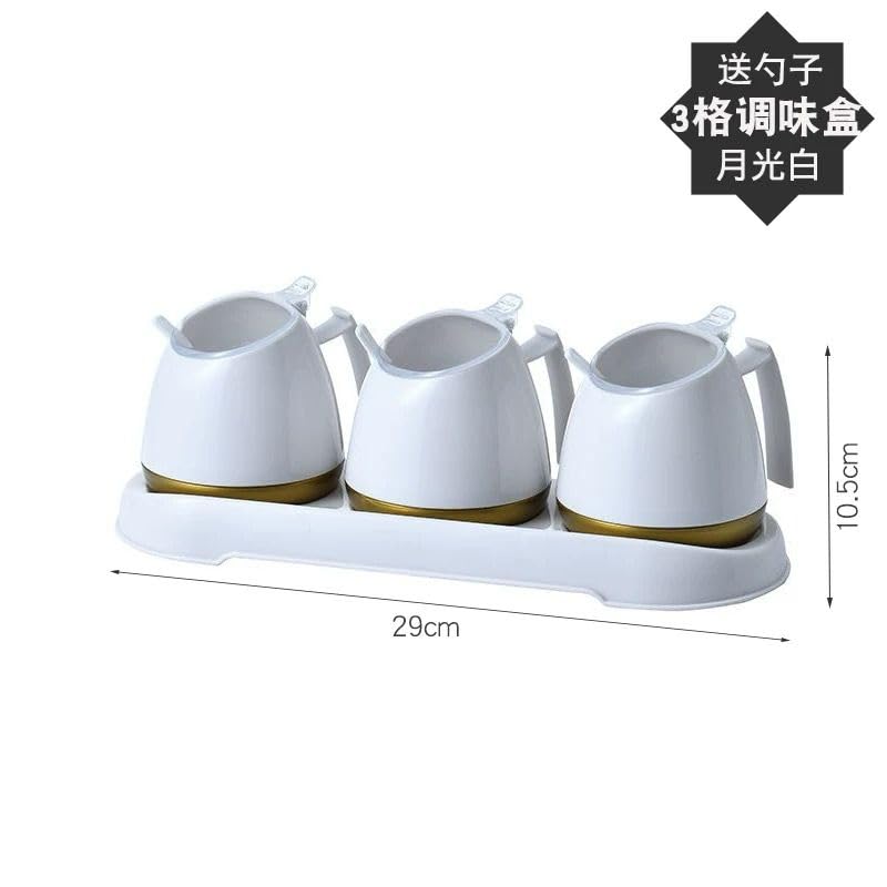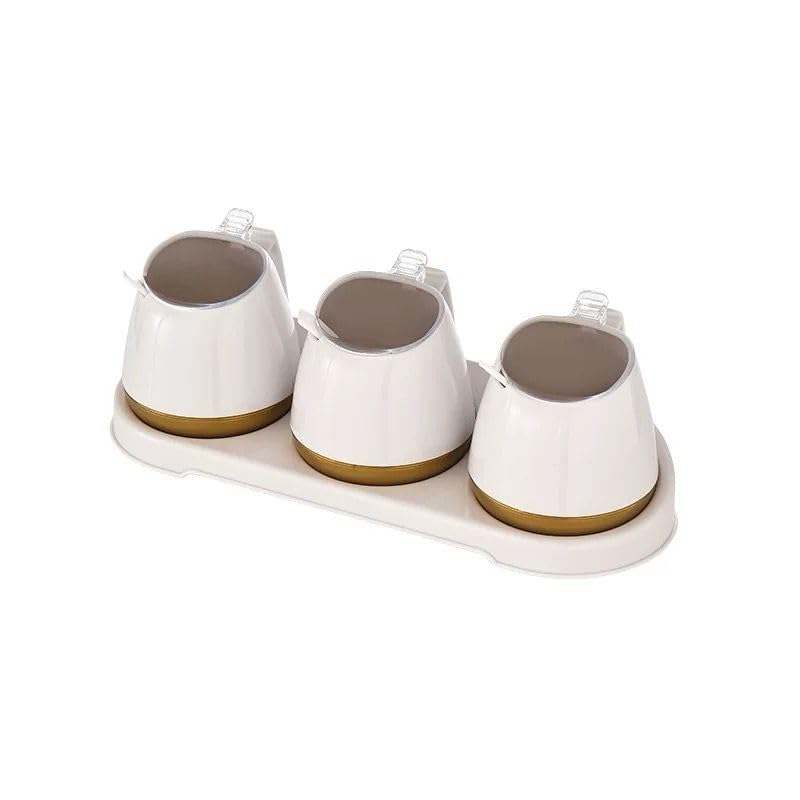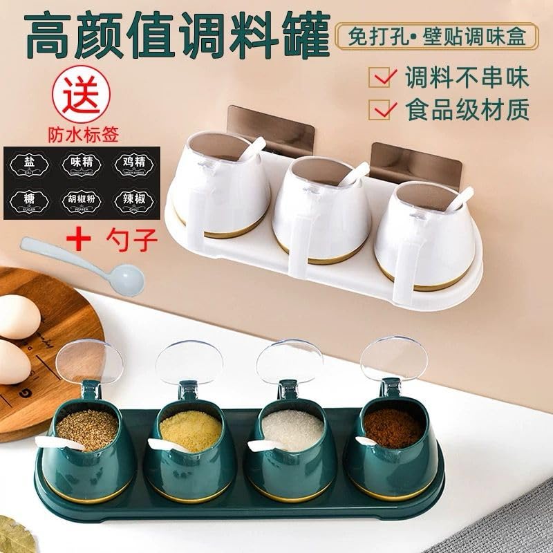 صندوق توابل للمطبخ المنزلي بدون ثقب مثبت على الحائط مع جرة توابل مغطاة مجموعة يابانية من جرة الملح (ابيض, 3 علب)