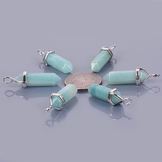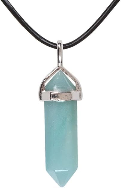 قلادة ريكي شاكرا أشار الأحجار الكريمة الطبيعية (بلو امازونيت)