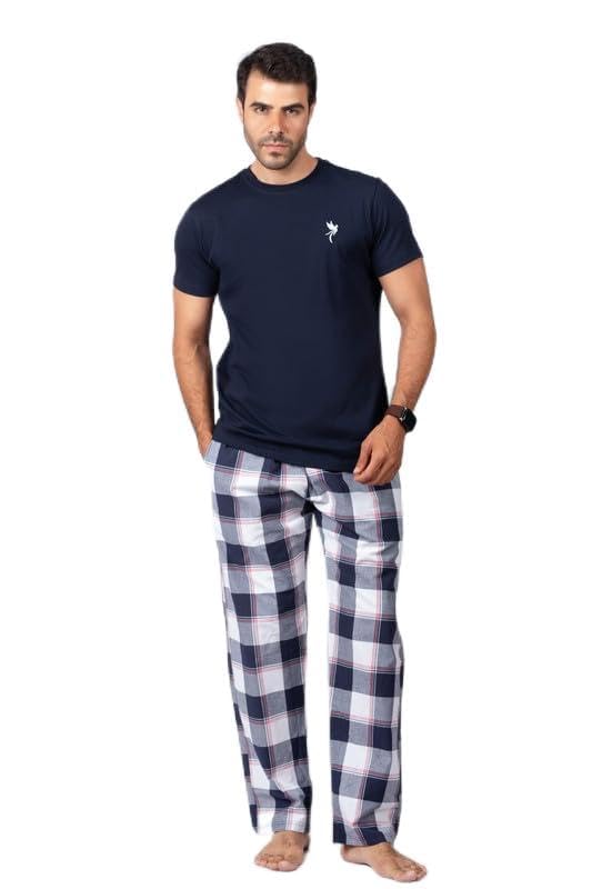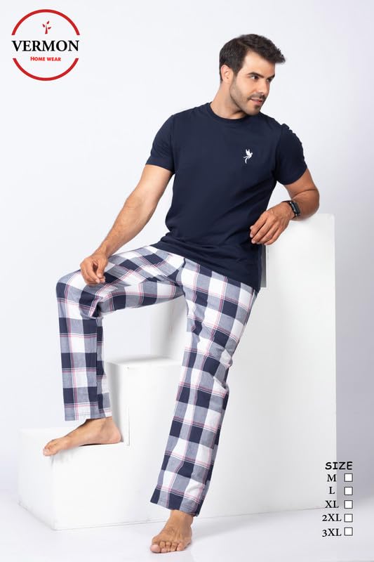 طقم بيجامة بنقشة مربعات للرجال مكون من تيشرت من فيرمون