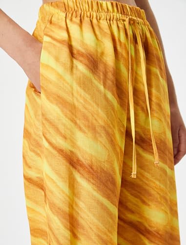 بنطلون برباط من مزيج من الكتان وجيوب للنساء من كوتون (عبوة من قطعة واحدة)
