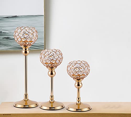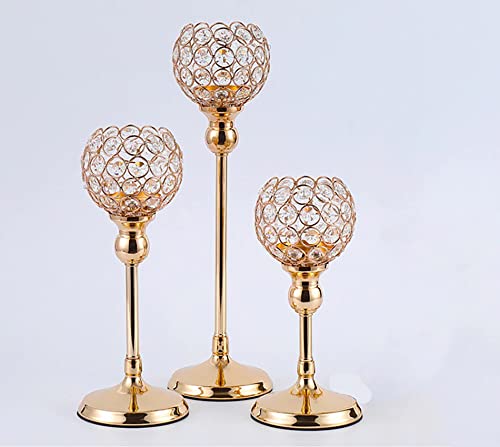 طقم شمعدان ذهبي من الكريستال والصلب مكون من 3 قطع